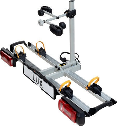 De MovaNext Lux CF is de lichtgewicht uitvoering van de MovaNext fietsendragers. Hij weegt slechts 12,8 kg en kan belast worden tot 60 kg en is daarom ook geschikt voor het vervoer van twee E-bikes. Met twee simpele bewegingen klemt u de drager binnen enkele seconden rechtstreeks op de trekhaak.